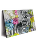 LED-Wandbild | Zebra & Blumen | Hochformat