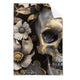 Unser Stoff-Ersatzmotiv Schädel & Blumen - Kunstvoller Kontrast im Querformat sorgt durch die Farben Gold, Schwarz, Weiss, Grau für eine gemütliche und ganz besondere Atmosphäre in Ihrem Raum. Schaffen Sie mit Ihrem neuen Wandbild-Motiv eine atemberaubende Wohlfühlatmosphäre!