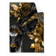 Unser Stoff-Ersatzmotiv Hirsch mit goldener Blumenpracht im Querformat sorgt durch die Farben Schwarz, Gold, Grau für eine gemütliche und ganz besondere Atmosphäre in Ihrem Raum. Schaffen Sie mit Ihrem neuen Wandbild-Motiv eine atemberaubende Wohlfühlatmosphäre!