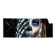 Das Wechselmotiv für Ihr Wandbild mit dem Motiv verkleidete Skelett-Frau der Kategorie Porträts - Menschen ist eine ausgezeichnete Wahl, um eine harmonische Wohlfühlatmosphäre zu schaffen. Das Maße große Spannbild als Textil-Ersatzdruck passt perfekt in Ihr Bar - Gastronomie, Friseur - Beauty, Wohnzimmer - Schlafzimmer. Sowohl die Schwarz, Weiss, Blau Farbe als auch der Modern Art, Schwarz - Weiss Stil der Fotografie sind aufeinander abgestimmt, sodass das Wandbild mit Ihren Möbeln und Ihrer Innenausstattung im Einklang ist. Frau, Porträt, modern, Beauty, Gesicht, Körper, Make-up, Totenkopf, Schädel, Halloween, Tag der Toten, Santa Muerte, Blumen – alles in Ihrem neuen Motiv vereint - lässt Erholung und Entspannung wieder frisch aufleben und setzt Ihrem Raum auch dieses Mal ein einzigartiges Highlight. Bringen Sie in Sekunden Frische in Ihre Räume und erleben Sie neue aufregende Welten mit einem Textil-Ersatzdruck für Ihr Spannbild im Hochformat.
