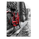 Unser Stoff-Ersatzmotiv Stadtgasse mit rotem Fahrrad im Querformat sorgt durch die Farben Schwarz, Weiss, Grau , Rot für eine gemütliche und ganz besondere Atmosphäre in Ihrem Raum. Schaffen Sie mit Ihrem neuen Wandbild-Motiv eine atemberaubende Wohlfühlatmosphäre!
