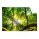 Unser quadratisches Motiv Sonnenstrahlen im dichten Wald jetzt in Ihrem Arzt - Praxis, BĂĽro - Kanzlei, Wohnzimmer - Schlafzimmer, Flur - Eingangsbereich
