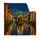 nachts in der Speicherstadt in Hamburg als Textilersatzdruck sorgt für eine atemberaubende Atmosphäre