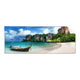 Strand in Thailand im Panorama-Hochformat verleiht Ihrem Raum eine gemütliche und gleichzeitig beeindruckende Atmosphäre, die Sie nicht mehr missen wollen. Die Farbgebung Blau, Türkis, Grün, Beige, Braun sowie der Natürlich - Realistisch Stil der Fotografie sorgen für ein harmonisches, atemberaubendes Bild an Ihrer Wand. Und das Ganze ist mit wenigen Handgriffen umgesetzt – tauschen Sie mit unserem Textilersatzdruck einfach und schnell Ihr Wandbild-Motiv und erleben Sie den neuen Charme Ihres Raumes. Ozean, Wasser, Horizont, Thailand, Bucht, Paradies, Insel, Boot, Südsee, Karibik, Urlaub – alles ist in Ihrem neuen Motiv vereint.