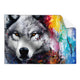 Unser quadratisches Motiv Wolf mit bunten Farbspritzern jetzt in Ihrem Bar - Gastronomie, Wohnzimmer - Schlafzimmer, BĂĽro - Kanzlei, Flur - Eingangsbereich
