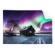 XXL-Wandbild | Nordlichter ...Textil-Ersatzdruck | Nordlichter über einem Holzhaus | Quadrat