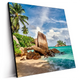 Die dimmbaren LEDs erweitern die künstlerischen Möglichkeiten und schaffen eine anpassbare Beleuchtung, die das Bild Seychellen - Tropische Insel lebendig erscheinen lässt. Sand, Ozean, Wasser, Küste, Palmen, Sommer, Urlaub, Reisen, Südsee, Karibik, Insel, Meer, Steine, Felsen, Natur – all´ das ist in diesem faszinierenden Panorama-Wandbild mit LED´s vereint und macht Ihren Raum zu einem Ort mit einem ganz einmaligen Wohlfühlerlebnis.