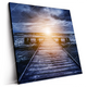 Der Eyecatcher im Raum - Holzsteg zum Sonnenuntergang als LED-Wandbild im Hochformat
