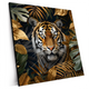 Das XXL Wandbild Exotischer Tiger mit Blättern der Kategorie Tierwelt, Blumen - Botanik im Hochformat ist ein beeindruckender Blickfang in Ihrem Arzt - Praxis, Büro - Kanzlei, Wohnzimmer - Schlafzimmer, Flur - Eingangsbereich. Je nach Größe Maße kann es ein wandfüllendes Kunstwerk werden oder einen Akzent setzen. Gerade in größeren Räumen, wie Wohn-, Empfangs- oder Besprechungsräumen, bietet sich das Hochformat an, um die Architektur zu betonen und den Raum zu füllen. Es lässt den Raum höher und beeindruckend erscheinen und schafft eine angenehme und inspirierende Atmosphäre.