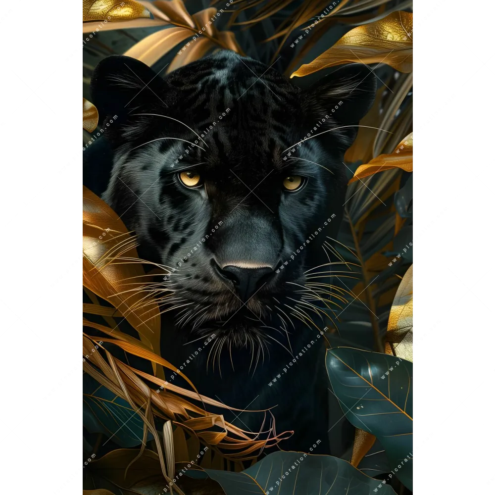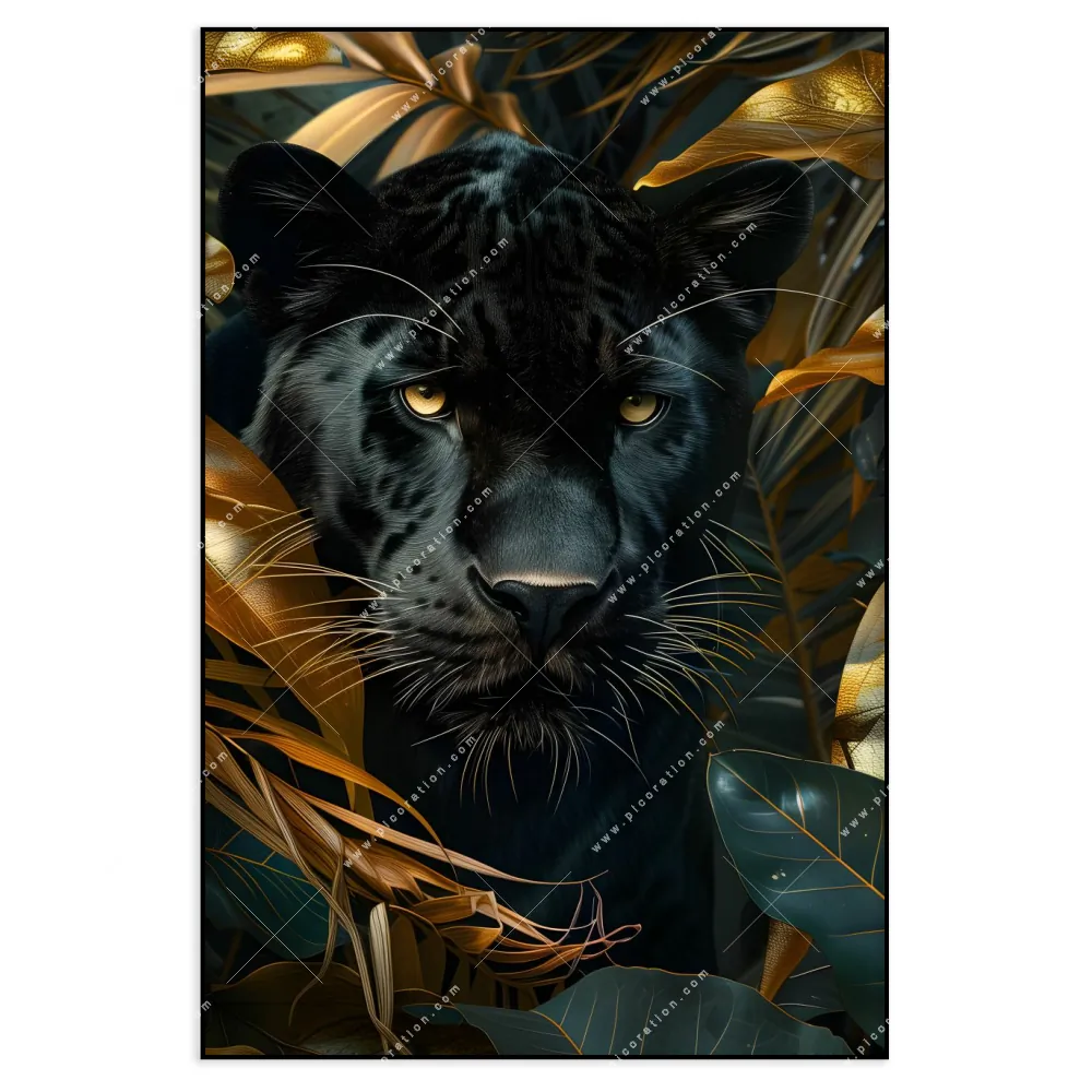 Schwarzer Panther im Dschungel als XXL-Wandbild im Hochformat