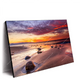 Charme und Flair mit Sonnenuntergang am Strand mit Felsen als LED-Wandbild