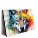 LED-Wandbild | Wolf mit bunten Farbspritzern No. 2 | Hochformat