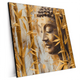 Buddha-Statue im goldenen Bambus als XXL-Wandbild im Hochformat