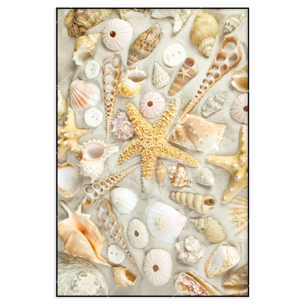 Das XXL Wandbild Strand voller Muscheln der Kategorie Strand - Meer, Muster - Texturen im Hochformat ist ein beeindruckender Blickfang in Ihrem Badezimmer, Flur - Eingangsbereich, Wohnzimmer - Schlafzimmer. Je nach Größe Maße kann es ein wandfüllendes Kunstwerk werden oder einen Akzent setzen. Gerade in größeren Räumen, wie Wohn-, Empfangs- oder Besprechungsräumen, bietet sich das Hochformat an, um die Architektur zu betonen und den Raum zu füllen. Es lässt den Raum höher und beeindruckend erscheinen und schafft eine angenehme und inspirierende Atmosphäre.