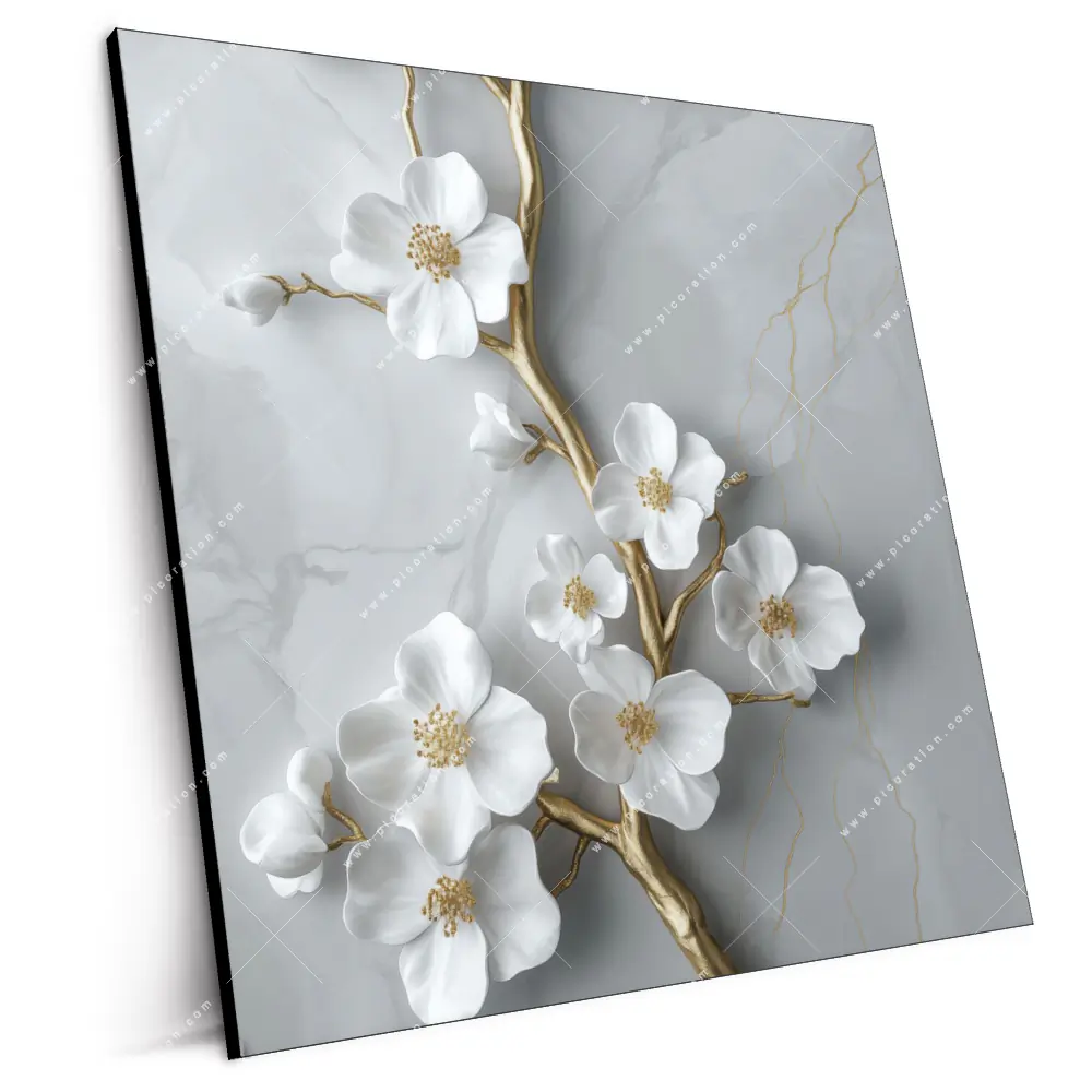 XXL-Wandbild | Lichtmalerei...XXL-Wandbild | Weiße Blüten an Goldzweig | Quadrat