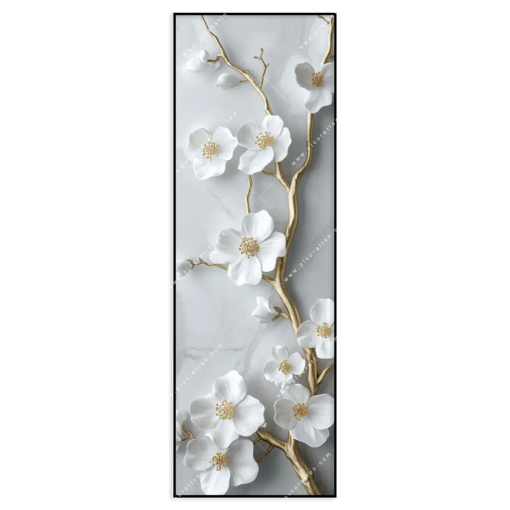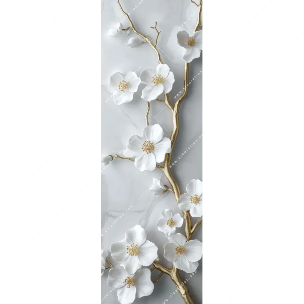 XXL-Wandbild | Weiße Blüten...XXL-Wandbild | Weiße Blüten an Goldzweig | Schmal