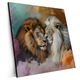 Beeindruckendes XXL Wandbild mit dem Motiv Sanfte Löwenmomente in buntem Nebel