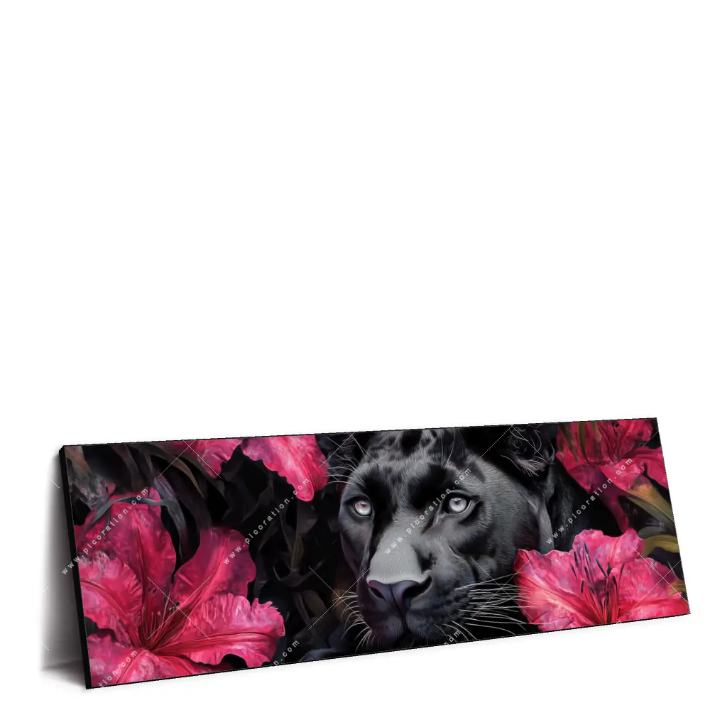 XXL Wandbilder im Panorama Format sind eine tolle Möglichkeit, um Räume stilvoll und individuell zu gestalten, insbesondere das Motiv Panther - Nachtjäger und Blüten erzielt dabei eine ganz besondere Wirkung. Doch das Motiv ist nicht passend für Ihren Raum? Dann stöbern Sie durch unsere große Auswahl an hochwertigen Wandbildern im Großformat - Denn mit einem XXL Wandbild können Wohnräume in eine angenehme Atmosphäre getaucht werden und ein optisch beeindruckender Mittelpunkt geschaffen werden.