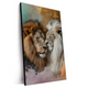 Sanfte Löwenmomente in buntem Nebel als beeindruckendes XXL-Motiv für Ihr Wandbild