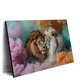 Sanfte Löwenmomente in buntem Nebel als Ihr neues XXL-Wandbild