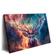 Bunter Hirsch in Flammen als XXL-Wandbild im Hochformat