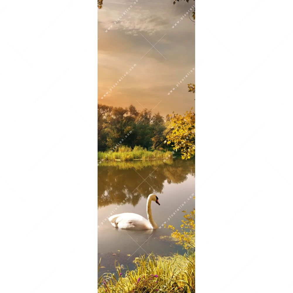 Faszinierende Raumwirkung durch Ihr Wandbild in XXL mit See mit Schwan bei Morgensonne