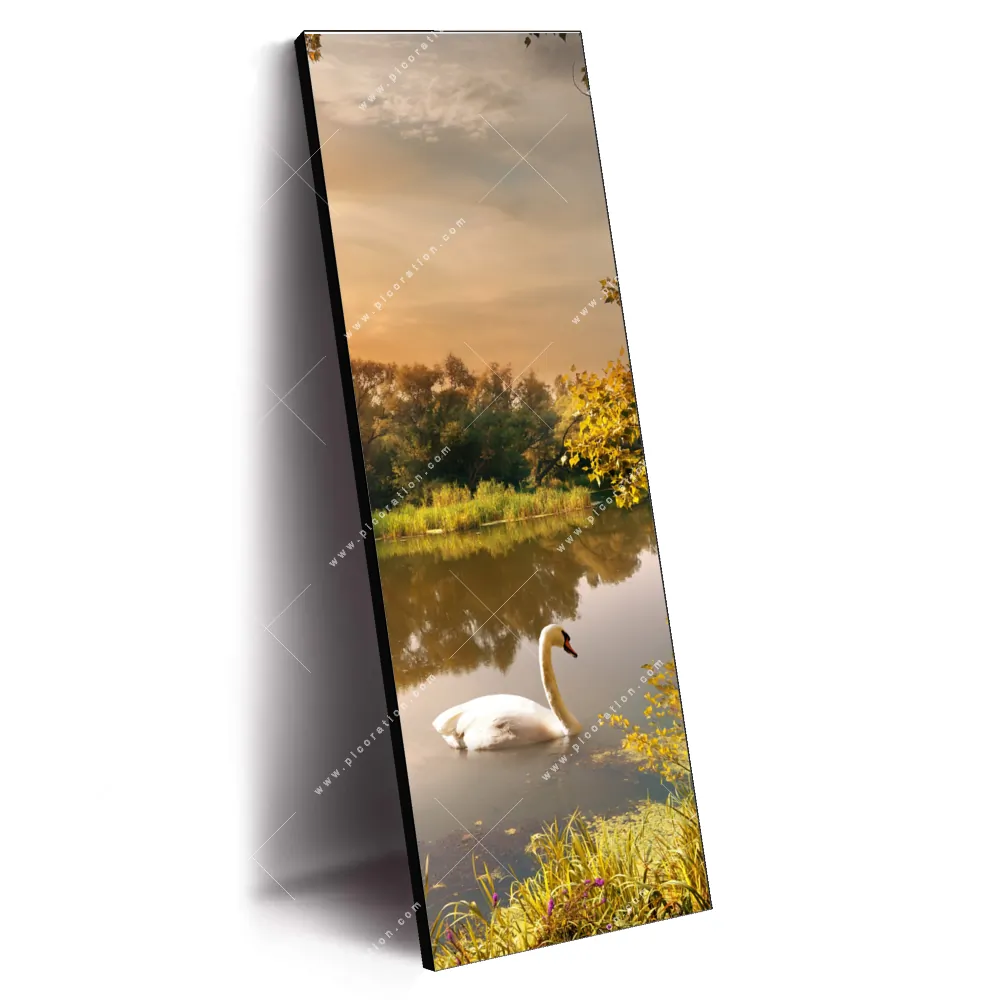 Die Panorama-Hochformat-Wandbilder in XXL sind für viele Räume geeignet, da sie jedem Raum eine persönliche Note geben und zu einem zentralen Bestandteil der Raumgestaltung werden. Insbesondere das Motiv Schwan im Teich der Kategorie Landschaften, Tierwelt sticht unter den XXL-Spannbildern hervor, denn durch den Retro - Vintage Stil der Fotografie schmiegt es sich jedem Raum, vom Wohn-/ Schlafzimmer, bis hin zum Büro oder der Praxis, harmonisch an. So entsteht eine Wohlfühlatmosphäre, die gleichzeitig fasziniert.