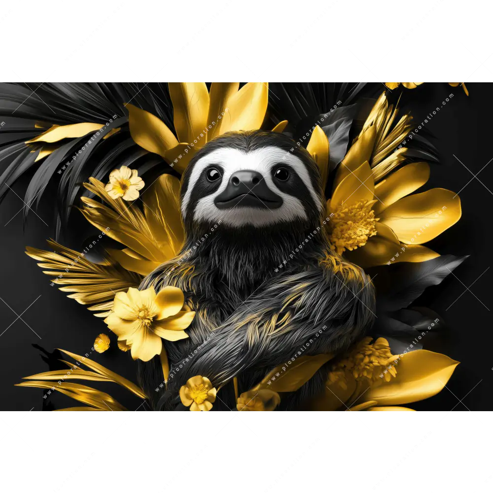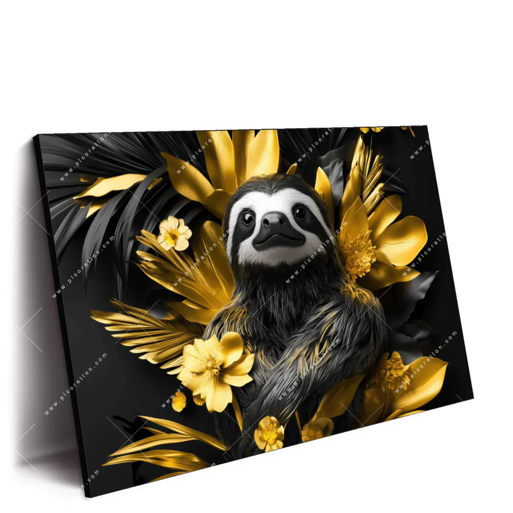 Beeindruckendes XXL Wandbild mit dem Motiv Faultier im goldenen Dschungel