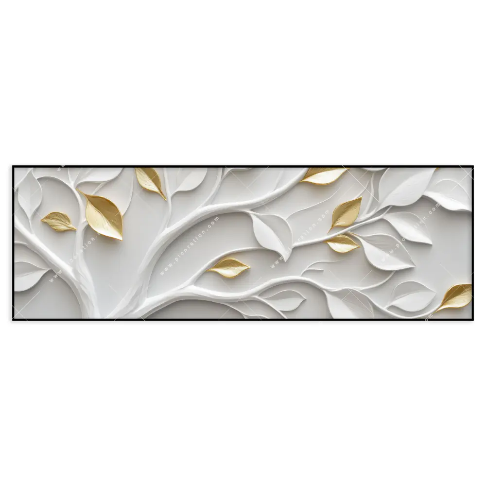 Die XXL Wandbilder gibt es in verschiedenen Motiven und Ausführungen. Ihre Suche nach Wald, Natur, Herbst, Baum, Stille, Blätter, Zweig hat Sie zu unserem atemberaubenden XXL Wandbild mit Goldene Blattkunst geführt. Lassen Sie sich von dem Abstrakt, Minimalistisch, Schwarz - Weiss Stil der Kunst - Malerei, Digitale Kunst verzaubern und ihr Arzt - Praxis, Büro - Kanzlei, Wohnzimmer - Schlafzimmer, Flur - Eingangsbereich wird in eine einmalige, faszinierende Atmosphäre eintauchen. Das Maße große Spannbild im XXL-Format lässt durch seine Größe die Farbgebung Weiss, Gold besonders hervorkommen, wodurch ein Betrachter vom Anblick des Wandbildes gefesselt wird.