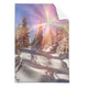 Sonnenstrahlen durch schneebedeckte Baumwipfel an Ihrer Wand – einfach als Textil-Ersatz-Bezug für Ihr Wandbild