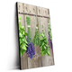 Der Eyecatcher im Raum - Naturkräuter hängend an Holz als LED-Wandbild im Hochformat