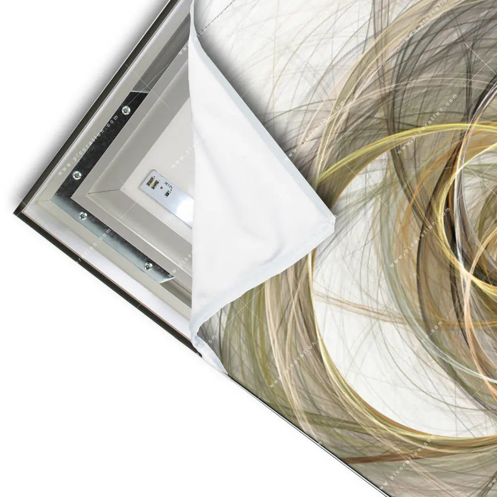 Das LED Wandbild mit dem Motiv Abstrakte moderne Linienkunst der Kategorie Muster - Texturen ist ein besonders beeindruckendes Wandbild mit LED-Beleuchtung, denn Kreise voller Dynamik wirkt durch die feinen LED´s hinter der textilen Oberfläche des Wandbildes noch intensiver und faszinierender auf den Betrachter. Unterstützt wird diese Wirkung des Wandbildes durch das Hochformat, welches in den Größen Maße zur Verfügung steht, um sich optimal an Ihre Wand anzuschmiegen und dem Raum ein neues Flair zu verleihen.