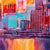 Das textile Oberflächenmaterial des LED-Wandbildes mit dem Motiv Buntes Stadtbild sorgt für eine hervorragende Lichtdurchlässigkeit, was den Effekt der indirekten Wandbild-Beleuchtung maximiert und das Bild zum Leben erweckt. Lassen Sie Ihr Bar - Gastronomie, Arzt - Praxis, Büro - Kanzlei, Wohnzimmer - Schlafzimmer mit dem LED-Bild Malerei einer Stadt der Kategorie Städte - Skylines erstrahlen und erschaffen Sie sich durch diese Atmosphäre eine Wohlfühloase. In diesem LED-Wandbild kommen die Farben Weiss, Schwarz, Blau, Rot, Rosa, Orange besonders zur Geltung, was den Stil des Wandbildes weiter untermalt.
