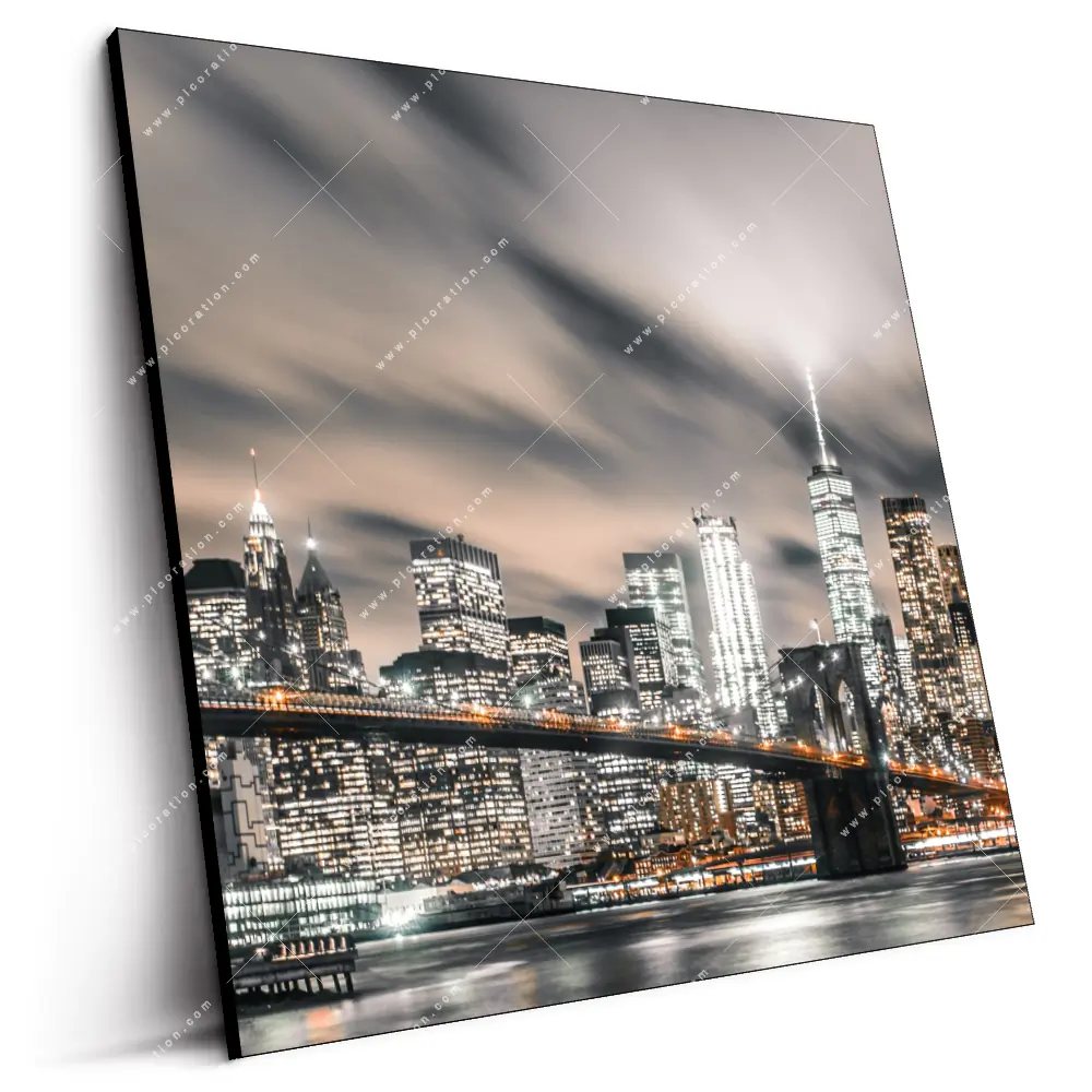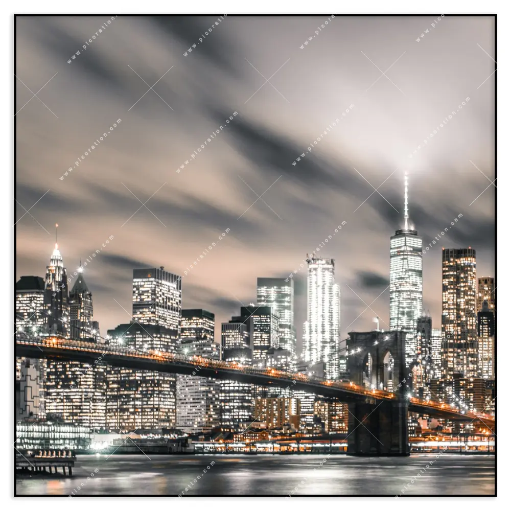 Insbesondere das LED-Wandbild nächtliche Skyline NYC im Modern Art, Natürlich - Realistisch, Schwarz - Weiss Stil der Digitale Kunst, Fotografie erzeugt eine beeindruckende Wirkung, die in dessen Beige, Weiss, Schwarz Farbgebung und den quadratischen Größen Maße erst recht zur Geltung kommt und betont wird. So schaffen Sie ein einmaliges Highlight in Ihrem Arzt - Praxis, Bar - Gastronomie, Büro - Kanzlei, Flur - Eingangsbereich, Wohnzimmer - Schlafzimmer und erzeugen eine unverwechselbare Wohlfühlatmosphäre durch die dezente Beleuchtung des Bildes und der so entstehenden indirekten Beleuchtung des Raumes.