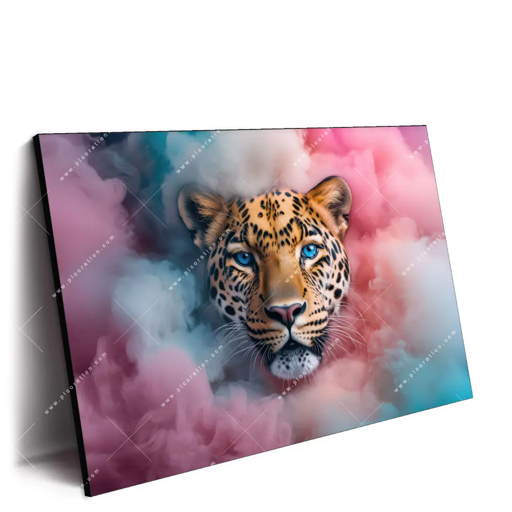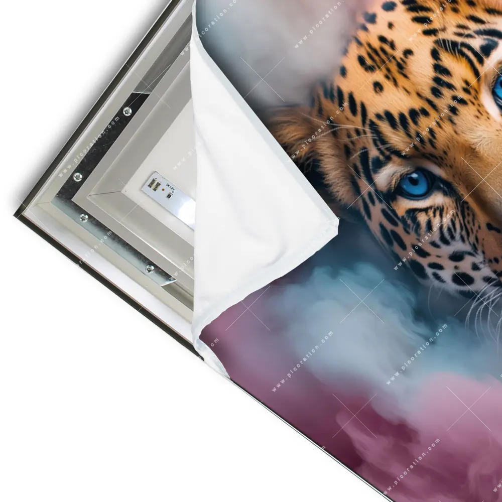 Ihr neues LED-Wandbild mit dem Motiv Leopard im Farbnebel