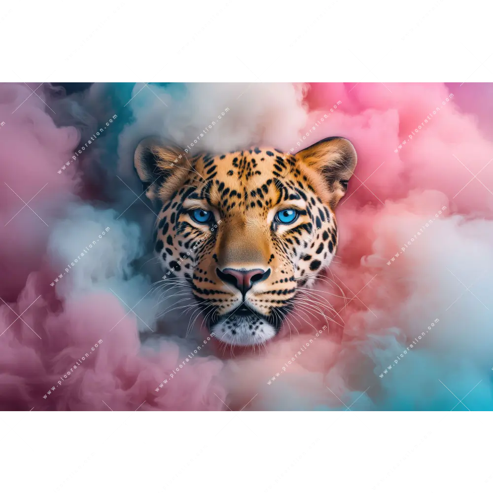 - Schlagwörter: Raubkatze, Tierporträt, Leopard, Panther, Wildkatze, Farbe, Farbexplosion, Farbnebel, Nebel, Rauch