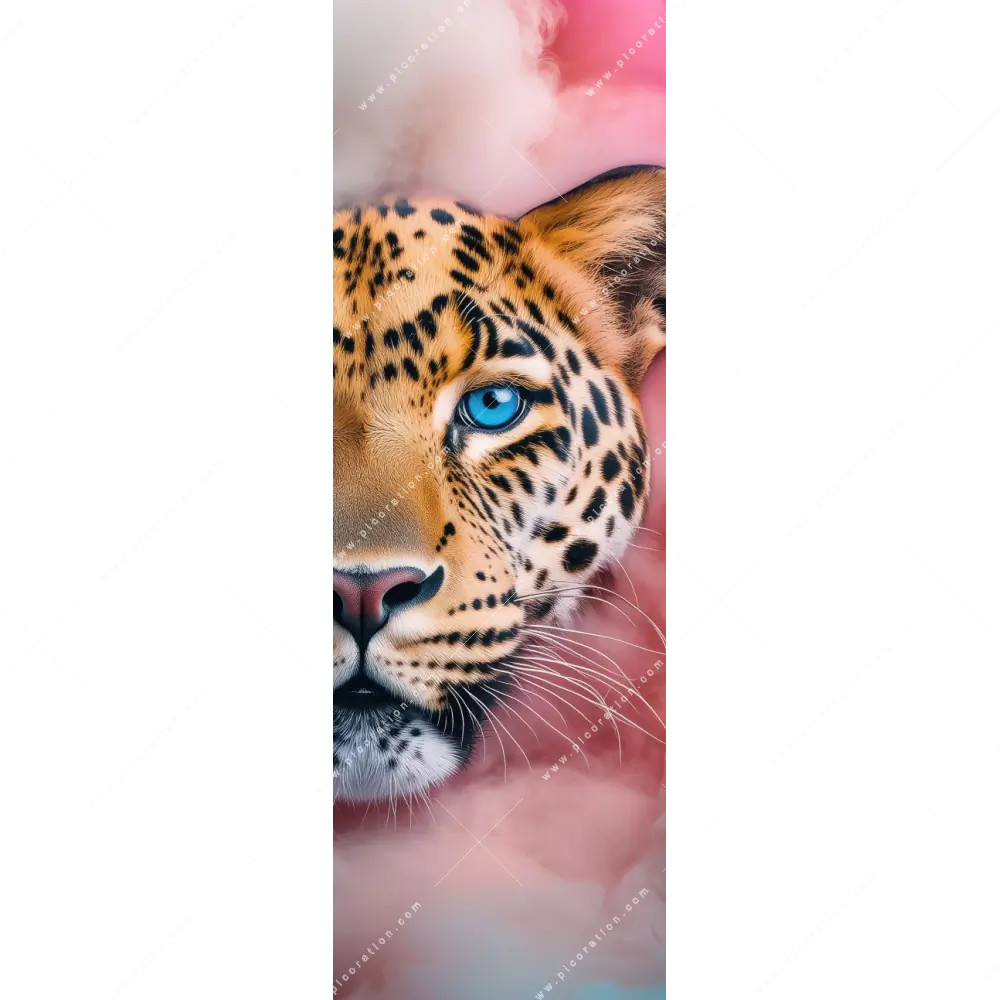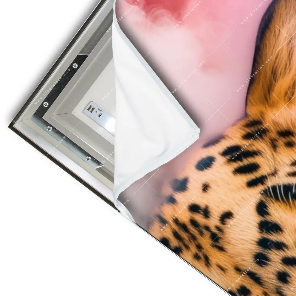 Das textile Oberflächenmaterial des LED-Wandbildes mit dem Motiv Wildkatze im Rauch sorgt für eine hervorragende Lichtdurchlässigkeit, was den Effekt der indirekten Wandbild-Beleuchtung maximiert und das Bild zum Leben erweckt. Lassen Sie Ihr Wohnzimmer - Schlafzimmer, Flur - Eingangsbereich, Arzt - Praxis mit dem LED-Bild Neon-Safari Leoparden-Portrait der Kategorie Tierwelt erstrahlen und erschaffen Sie sich durch diese Atmosphäre eine Wohlfühloase. In diesem LED-Wandbild kommen die Farben Beige, Pink, Blau besonders zur Geltung, was den Stil des Wandbildes weiter untermalt.