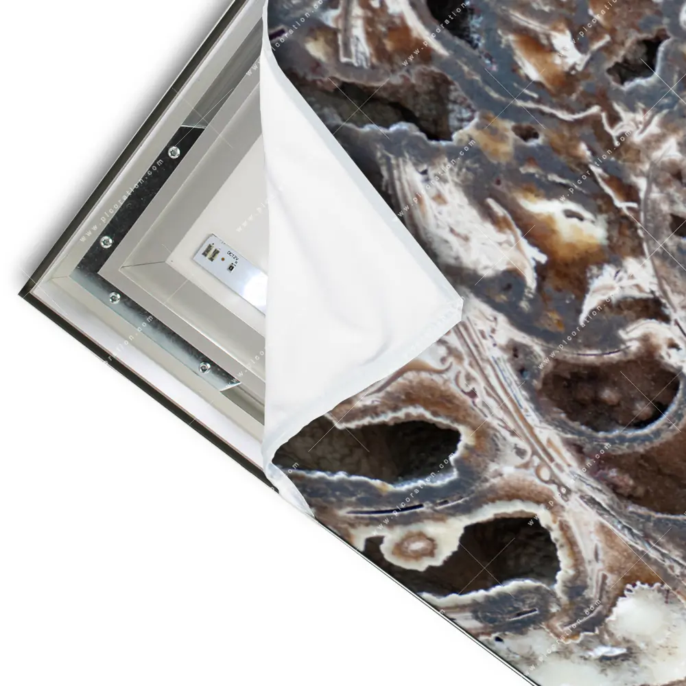 Das innovative LED-Leuchtbild im Querformat, mit dem Motiv "Muschel Fossil No. 3", ist eine moderne Wanddekoration mit wechselbarem Textildruck. Dieses beleuchtete Wandbild mit dem Thema "Muster - Texturen" besteht aus einem CANVALIGHT® LED-Spannrahmen von 4,5-6 cm Tiefe. Die integrierte LED-Beleuchtung strahlt in der Lichtfarbe 6500-7000K und erzeugt eine ansprechende Atmosphäre. Der Textildruck zeigt Muschel, Nahaufnahme, Makro, Fossil, close up, Spirale, Rost, Rostoptik und ist auf hochwertigem High-Tech-Polyestergewebe gedruckt. Das Querformat-Design mit fossiles Gestein in den Farben Gold, Braun, Beige, Schwarz wird durch einen umlaufenden Keder im Rahmen gehalten. Unser dimmbares LED Wandbild "spiralförmiges, antikes Gesteinsgebilde" im Abstrakt, Modern Art, Geometrisch und modernen Kunststil wird inklusive Fernbedienung geliefert. Das Querformat LED Bild "LED-Wandbild | Muschel Fossil No. 3 | Querformat" wird steckerfertig produziert und kann direkt an die Steckdose angeschlossen werden. Alternativ kann das Netzteil auch innenliegend (Kabel kommt aus der Wand) verwendet werden.