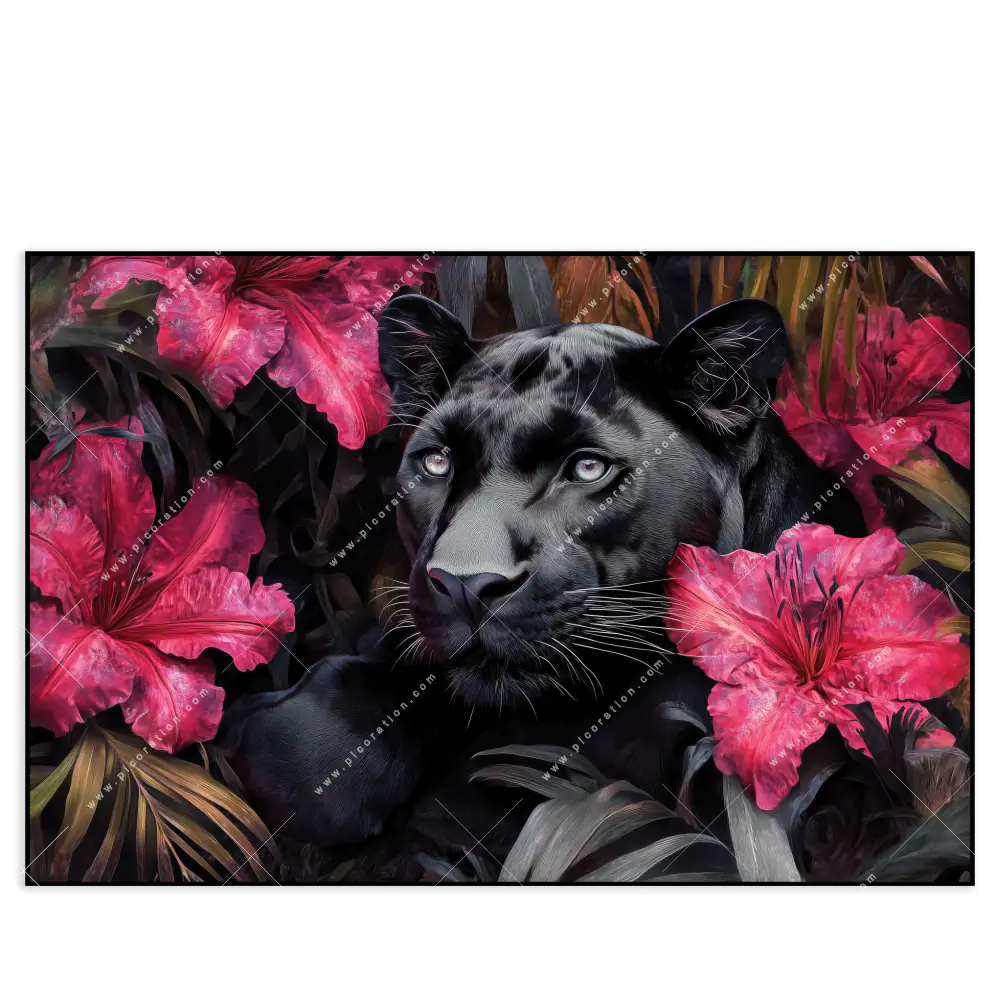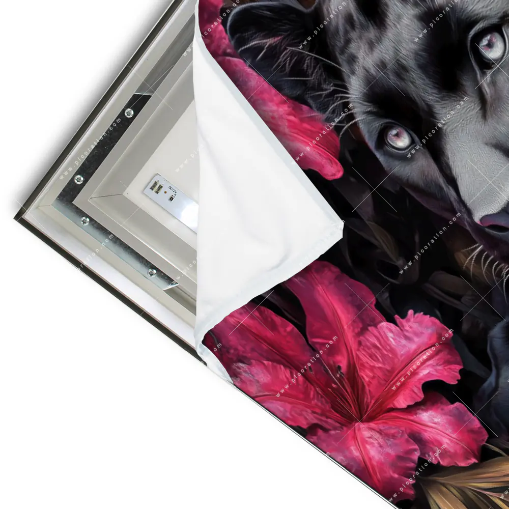 Ihr neues LED-Wandbild mit dem Motiv Panther im Blütenmeer