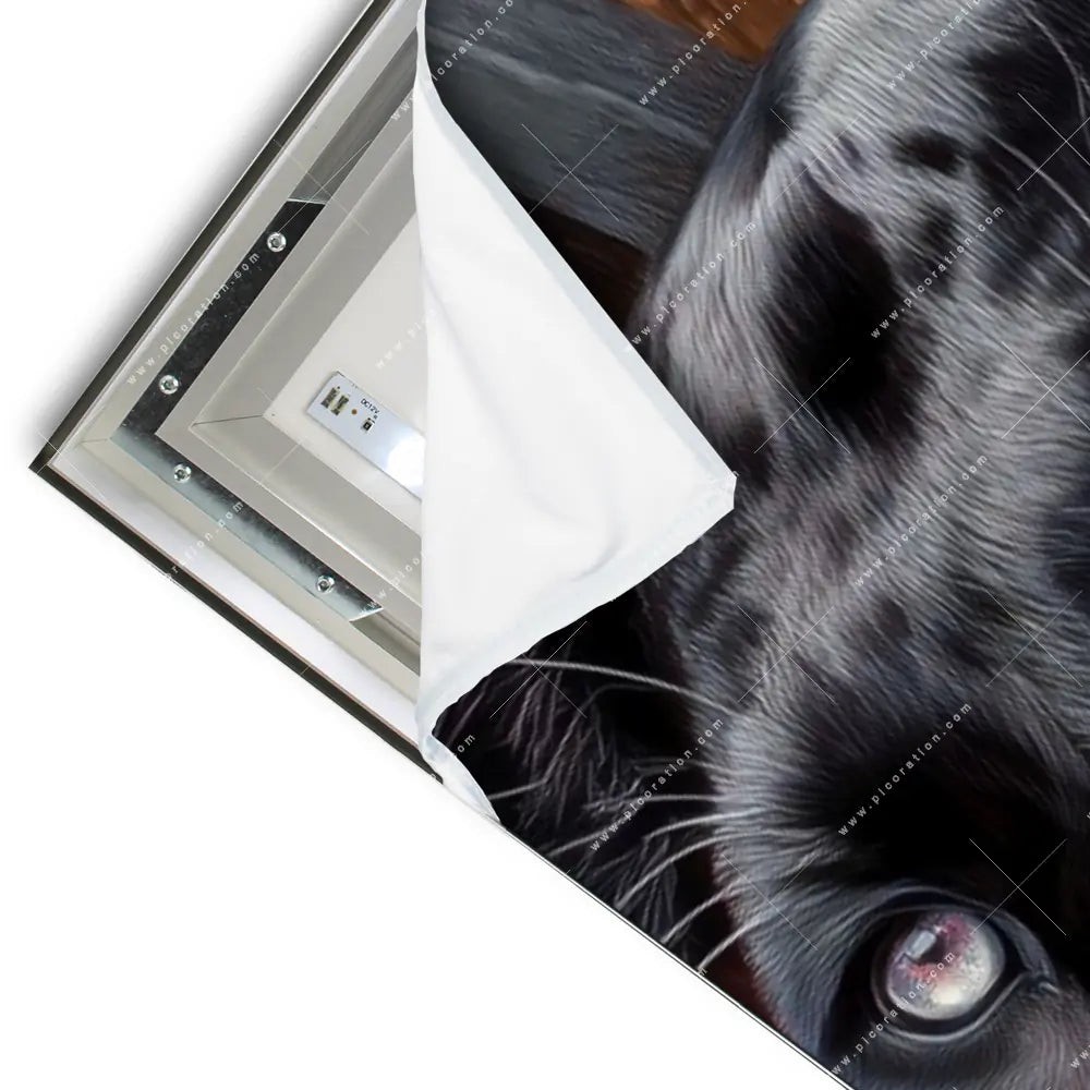 Panther zwischen pinken Blüten als Wandbild mit LED-Beleuchtung – einfach beeindruckend