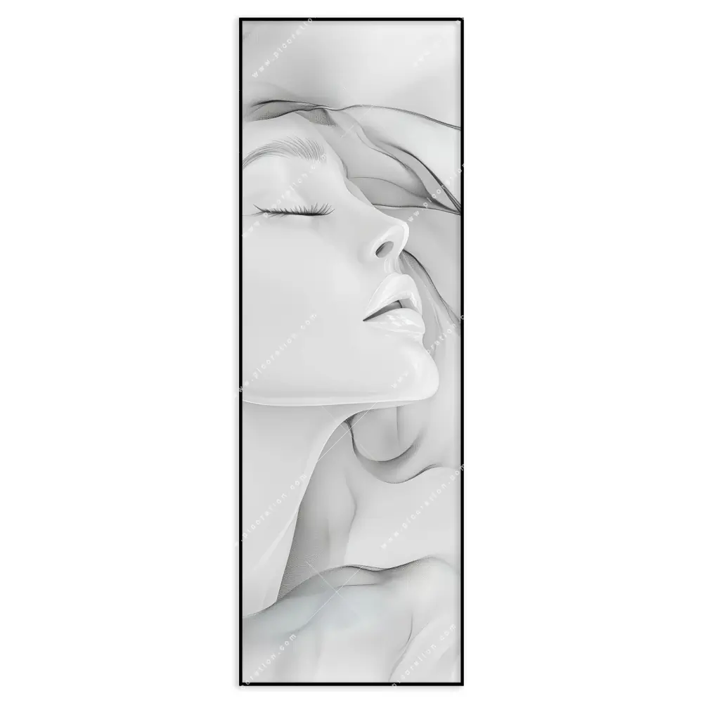 Das innovative LED-Leuchtbild im Schmal, mit dem Motiv "Sanfter Seelentraum", ist eine moderne Wanddekoration mit wechselbarem Textildruck. Dieses beleuchtete Wandbild mit dem Thema "Porträts - Menschen" besteht aus einem CANVALIGHT® LED-Spannrahmen von 4,5-6 cm Tiefe. Die integrierte LED-Beleuchtung strahlt in der Lichtfarbe 6500-7000K und erzeugt eine ansprechende Atmosphäre. Der Textildruck zeigt Frau, Gesicht, Portrait, Mädchen, Dame, Schönheit, Wellen, Schwung, Linien und ist auf hochwertigem High-Tech-Polyestergewebe gedruckt. Das Schmal-Design mit Schwebende Silhouette in den Farben Weiss, Grau wird durch einen umlaufenden Keder im Rahmen gehalten. Unser dimmbares LED Wandbild "Weibliche Schönheit" im Abstrakt, Minimalistisch und modernen Kunststil wird inklusive Fernbedienung geliefert. Das Schmal LED Bild "LED-Wandbild | Sanfter Seelentraum | Schmal" wird steckerfertig produziert und kann direkt an die Steckdose angeschlossen werden. Alternativ kann das Netzteil auch innenliegend (Kabel kommt aus der Wand) verwendet werden.