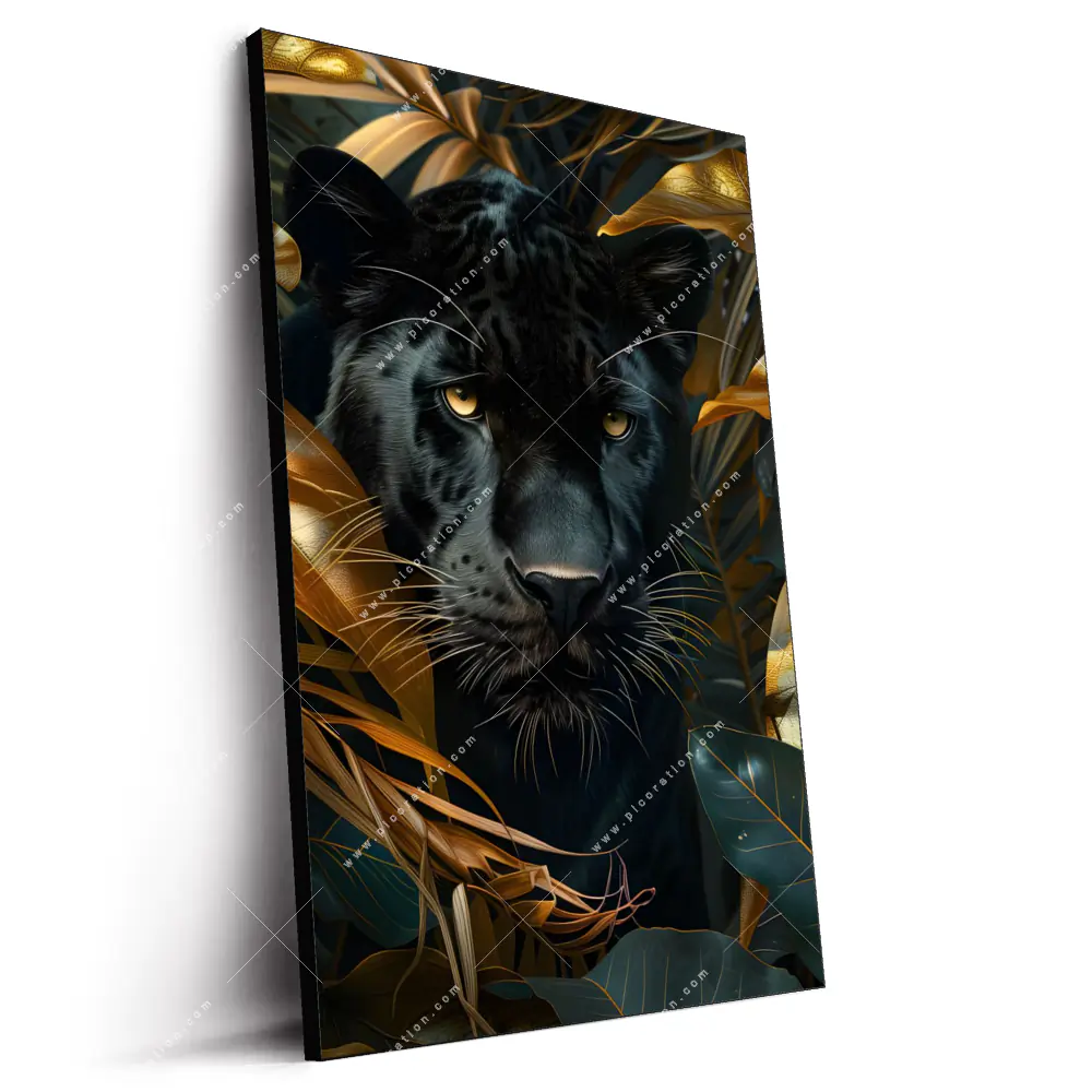 LED-Wandbild | Schwarzer Panther im Dschungel | Hochformat