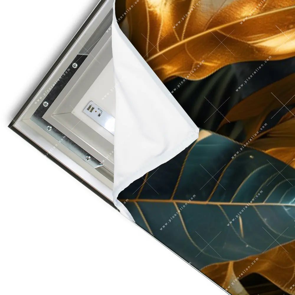 Die dimmbaren LEDs erweitern die künstlerischen Möglichkeiten und schaffen eine anpassbare Beleuchtung, die das Bild Mystische Dschungelszene mit Panther lebendig erscheinen lässt. Blätter, Pflanze, Natur, Nahaufnahme, Dschungel, Monstera, Palmenblätter, Panther, Raubkatze – all´ das ist in diesem faszinierenden Panorama-Wandbild mit LED´s vereint und macht Ihren Raum zu einem Ort mit einem ganz einmaligen Wohlfühlerlebnis.