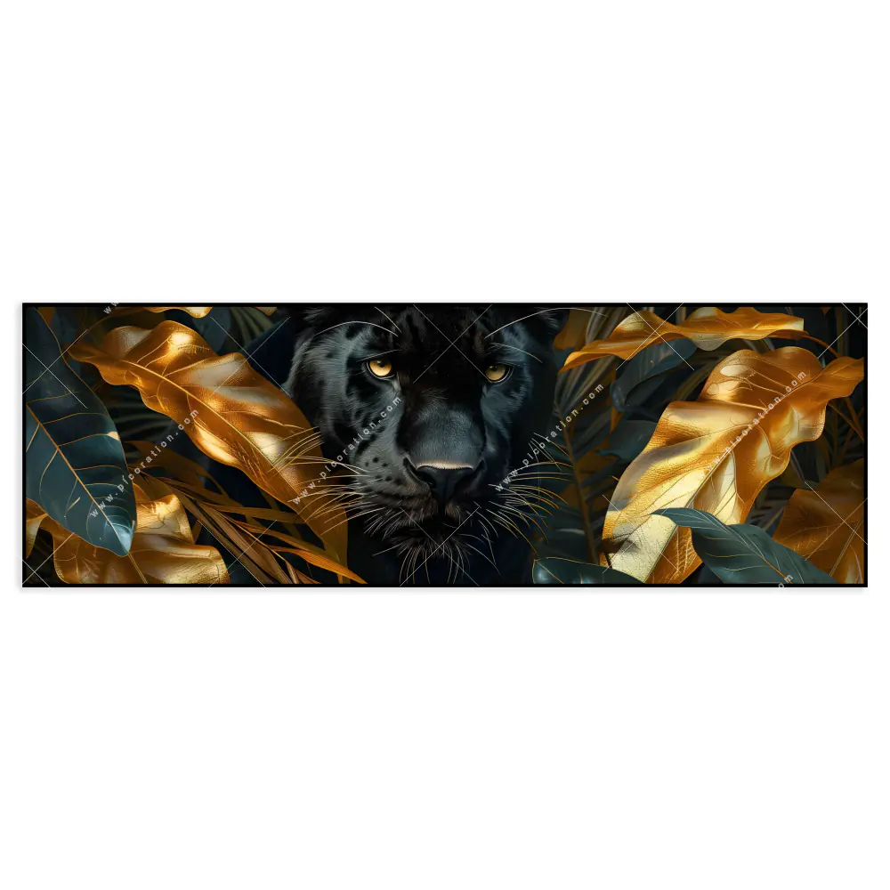 Die Verwendung moderner LED-Technologie und fortschrittlicher Digitaldruckverfahren ermöglicht eine unverwechselbare Qualität und sorgt für eine realistische und detailreiche Darstellung von Farben, Formen und Texturen. So entsteht bei dem Motiv Raubkatze zwischen goldenen Blättern der Kategorie Blumen - Botanik, Tierwelt ein ganz besonderer und intensiver Eindruck auf den Betrachter. Schwarz, Gold Farbe als auch der Floral, Modern Art Stil der Digitale Kunst gehen harmonisch aufeinander ein in diesem LED-Wandbild. Das Panoramaformat untermalt diesen Effekt und aufgrund der Größenauswahl Maße können Sie für Ihren Raum das ideale Panoramaformat für das LED-Wandbild Mystische Dschungelszene mit Panther finden.