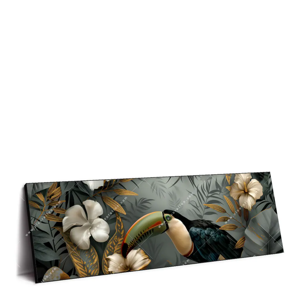 LED-Wandbild | Tukan im goldenen Regenwald | Panorama