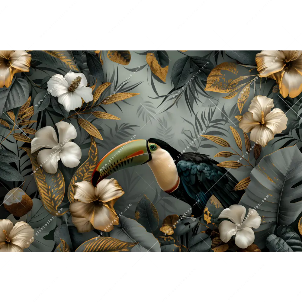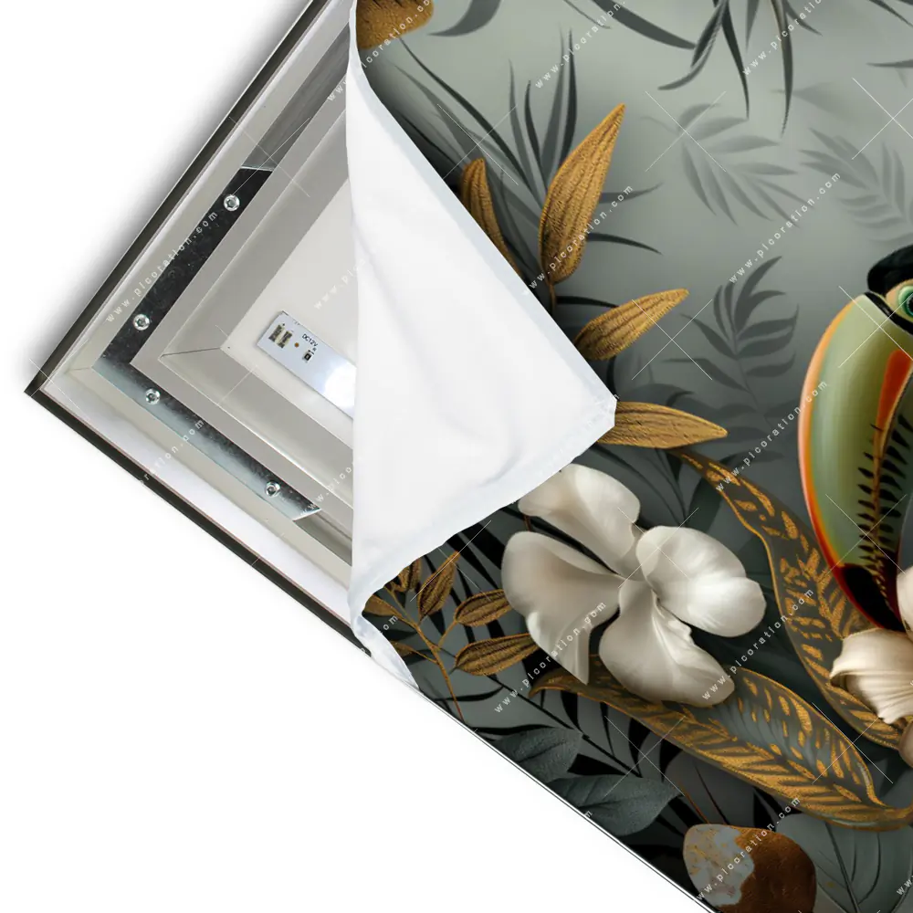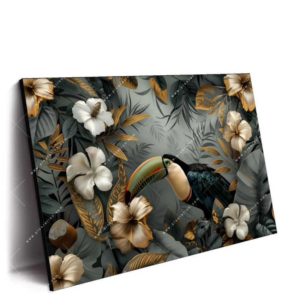 Ihr neues LED-Wandbild mit dem Motiv Tukan im goldenen Regenwald
