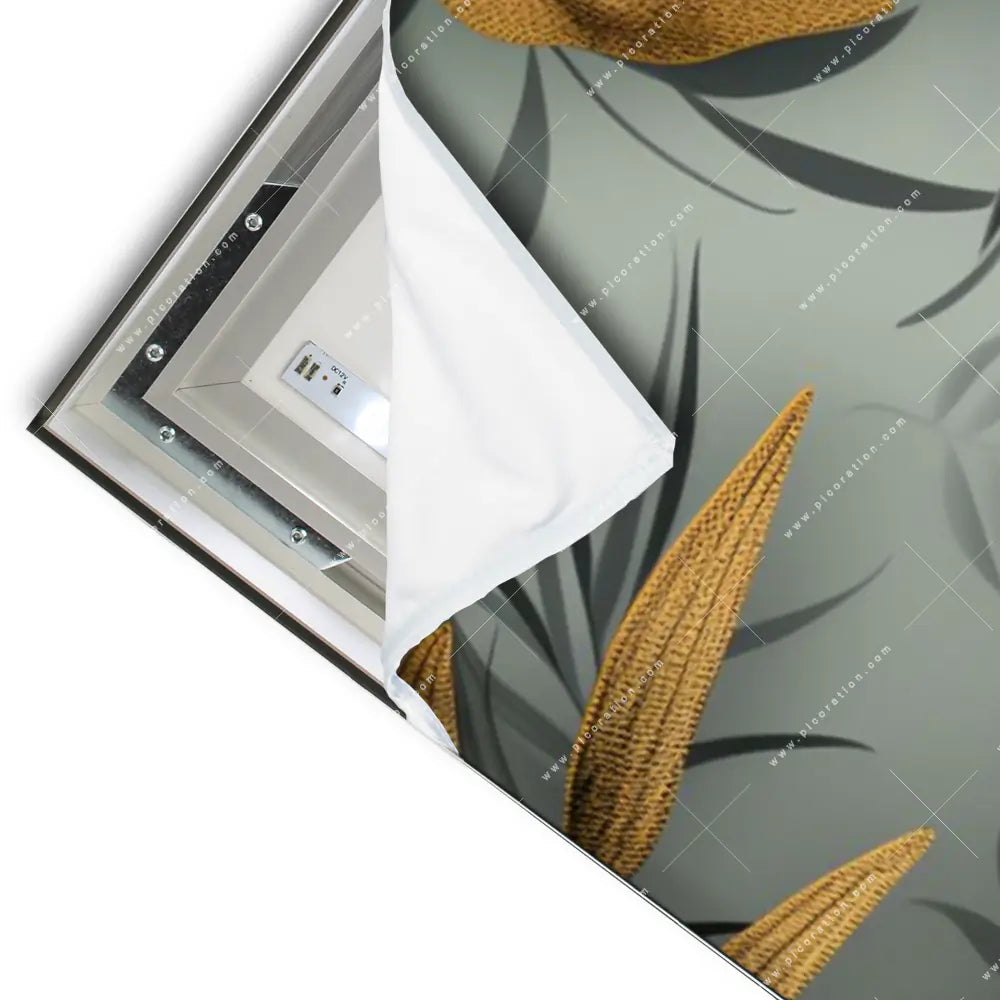 Das textile Oberflächenmaterial des LED-Wandbildes mit dem Motiv Goldene Blumen und Tropen-Vogel sorgt für eine hervorragende Lichtdurchlässigkeit, was den Effekt der indirekten Wandbild-Beleuchtung maximiert und das Bild zum Leben erweckt. Lassen Sie Ihr Wohnzimmer - Schlafzimmer, Flur - Eingangsbereich, Büro - Kanzlei mit dem LED-Bild Tukan im exotischen Dschungel der Kategorie Blumen - Botanik, Tierwelt erstrahlen und erschaffen Sie sich durch diese Atmosphäre eine Wohlfühloase. In diesem LED-Wandbild kommen die Farben Gold, Weiss besonders zur Geltung, was den Stil des Wandbildes weiter untermalt.
