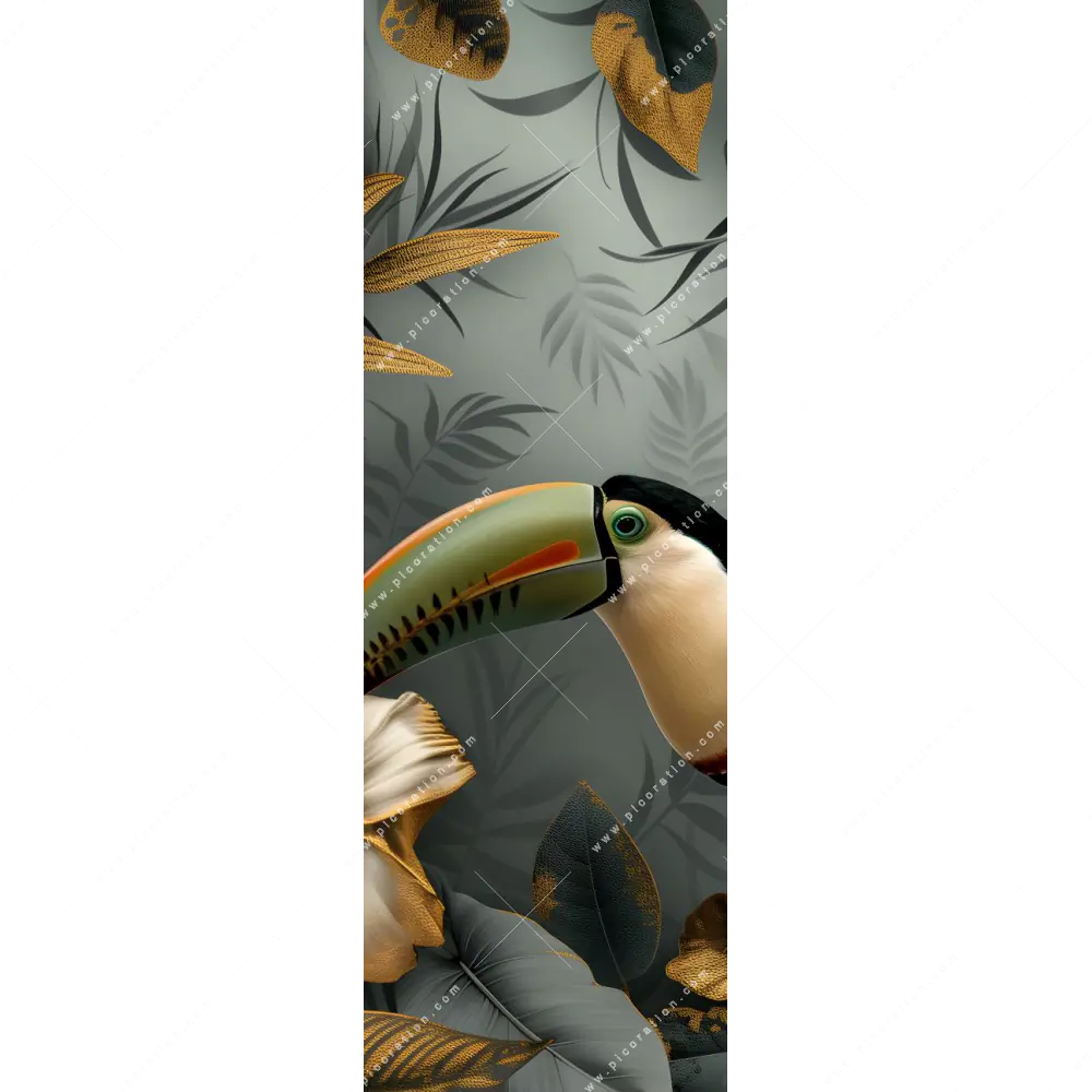 LED-Wandbild | Tukan im goldenen Regenwald | Schmal