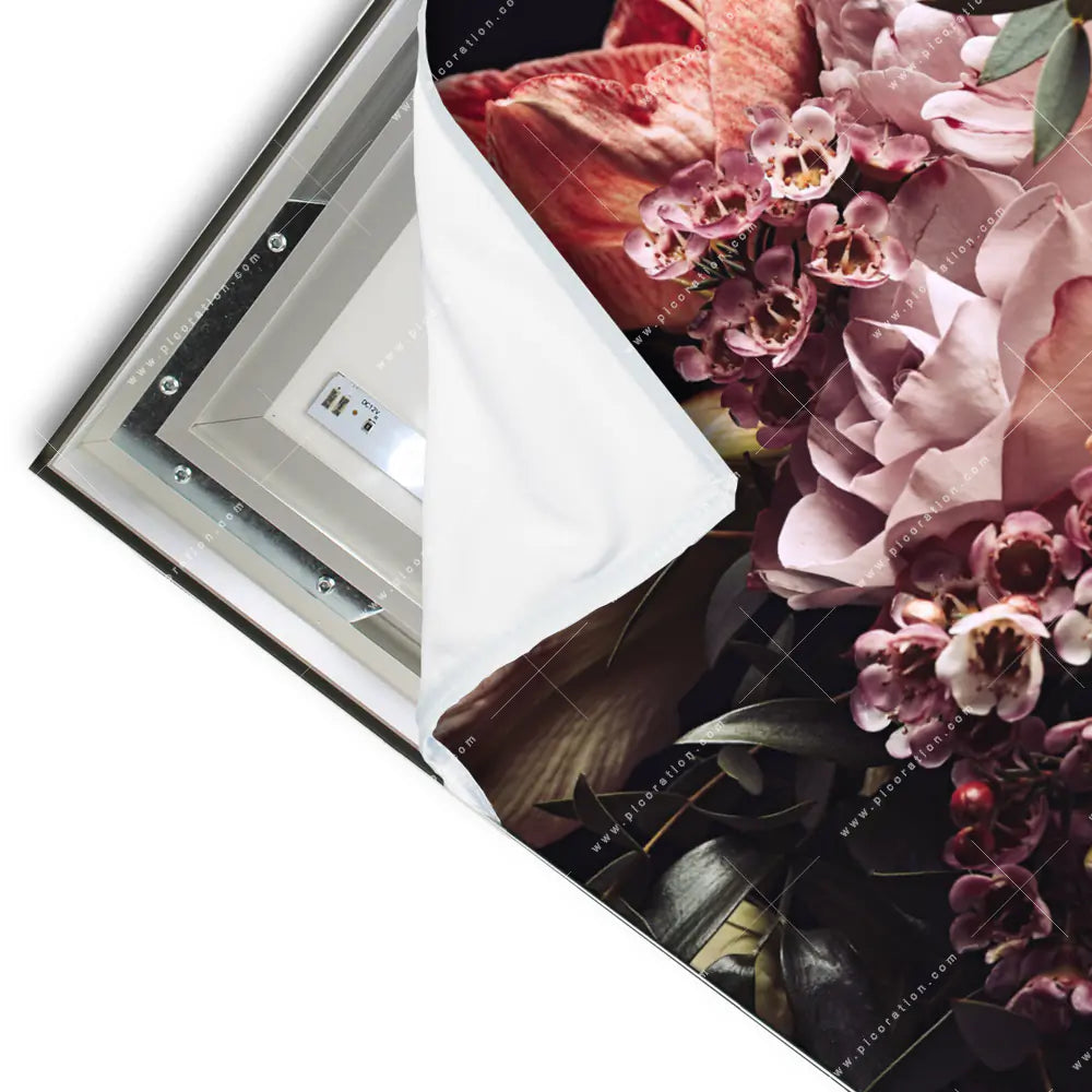 verschiedene Blüten vor dunklem Hintergrund als LED-Wandbild – schaffen Sie Wohlfühlatmosphäre