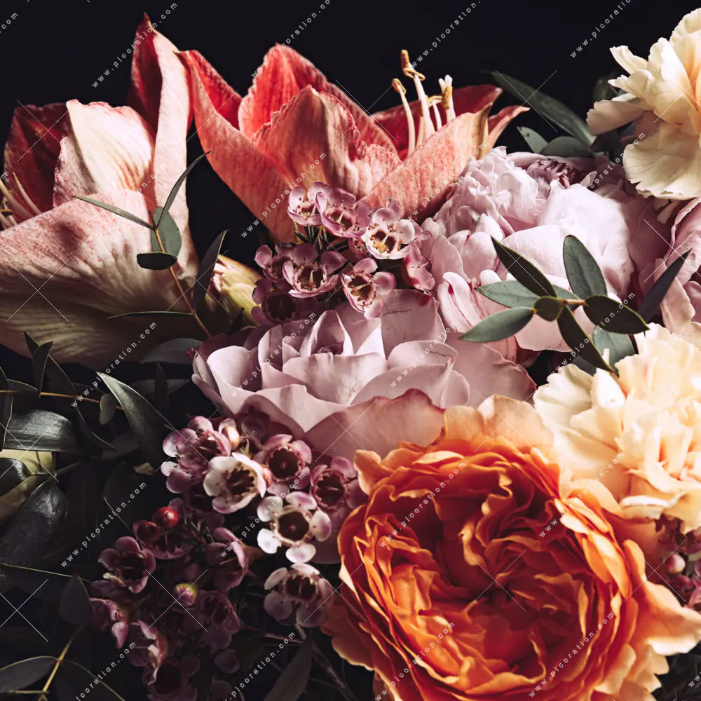 Insbesondere das LED-Wandbild Blumenstrauß im Vintage-Stil im Floral, Retro - Vintage Stil der Fotografie erzeugt eine beeindruckende Wirkung, die in dessen Schwarz, Rosa, Orange, Grün, Pink, Lila Farbgebung und den quadratischen Größen Maße erst recht zur Geltung kommt und betont wird. So schaffen Sie ein einmaliges Highlight in Ihrem Arzt - Praxis, Büro - Kanzlei, Wohnzimmer - Schlafzimmer und erzeugen eine unverwechselbare Wohlfühlatmosphäre durch die dezente Beleuchtung des Bildes und der so entstehenden indirekten Beleuchtung des Raumes.